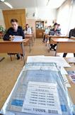 Школьники во время сдачи Единого Государственного экзамена (ЕГЭ) по французскому языку в "Школе здоровья" №149.