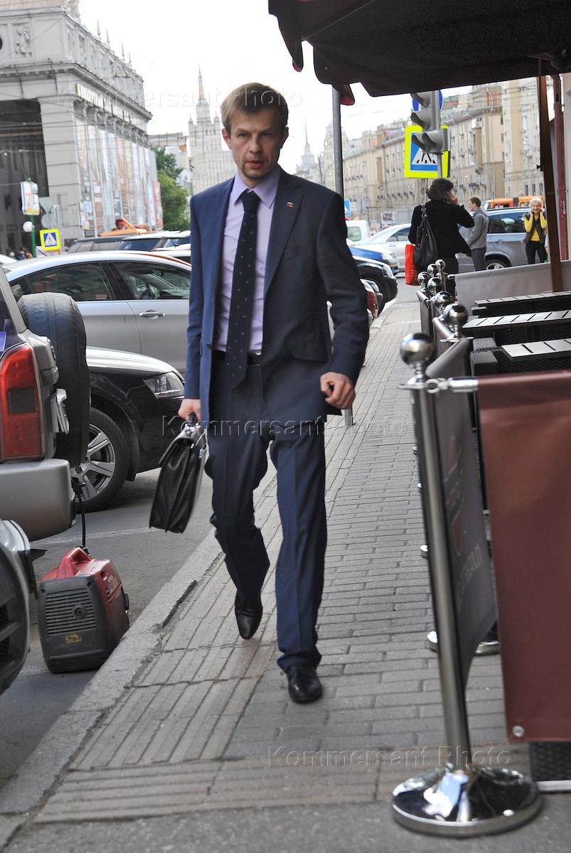 Генеральный директор канала РБК Александр Любимов после пресс-конференции президента "Онэксим" Михаила Прохорова, на которой он объявил о своих дальнейших действиях в политике. Пресс-конференция прошла в центральном офисе агентства "Интерфакс".