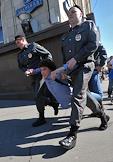 Сотрудники полиции во время задержания председателя Российской объединенной демократической партии "Яблоко" Сергея Митрохина вместе с участниками акции против поправок, подготовленных Государственной думой России, в Административный кодекс и ФЗ 54 "О собраниях, митингах, демонстрациях, шествиях и пикетировании". Акция прошла у здания Госдумы.