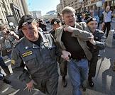 Сотрудники полиции во время задержания председателя Российской объединенной демократической партии "Яблоко" Сергея Митрохина (в центре) вместе с участниками акции против поправок, подготовленных Государственной думой России, в Административный кодекс и ФЗ 54 "О собраниях, митингах, демонстрациях, шествиях и пикетировании". Акция прошла у здания Госдумы.