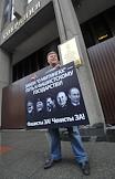 Председатель Российской объединенной демократической партии "Яблоко" Сергей Митрохин во время одиночного пикета против поправок в Административный кодекс и ФЗ 54 "О собраниях, митингах, демонстрациях, шествиях и пикетировании". Пикет прошел перед зданием Совета Федерации России.