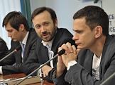 Слева направо: член комитета Государственной думы России по физической культуре, спорту и делам молодежи Дмитрий Гудков, член комитета Государственной думы России по экономической политике, инновационному развитию и предпринимательству Илья Пономарев и член бюро движения "Солидарность" Илья Яшин во время заседания "Круглого стола" на тему: "Лица протеста", в рамках спецпроекта "Политклуб Росбалта". Круглый стол прошел в офисе информационного агентства "Росбалт".