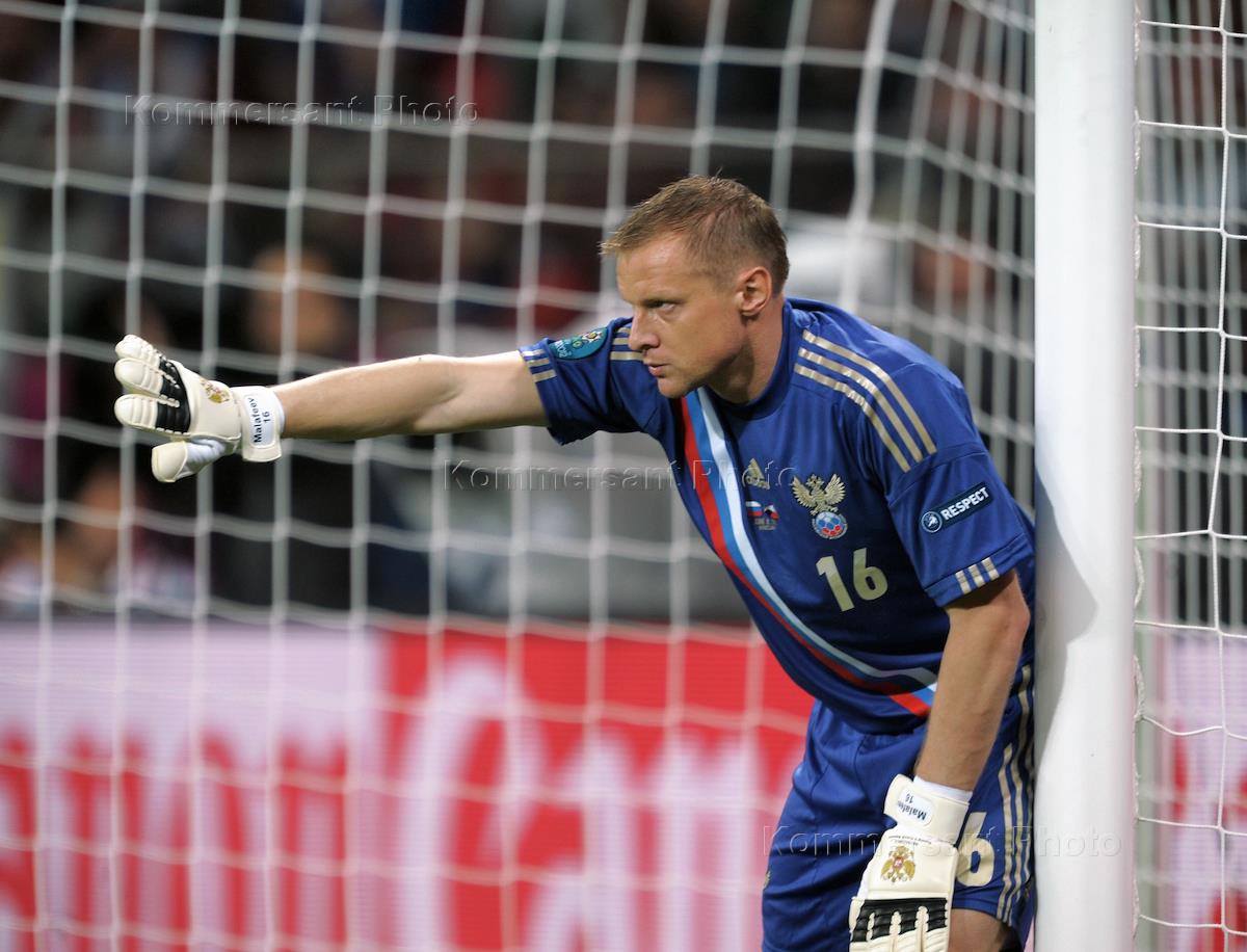 UEFA European Football Championship UEFA EURO (Euro 2012). Footballer Vyacheslav Malafeev during a match between the national teams of Russia and the Czech Republic. The match took place at the stadium "Miejski".