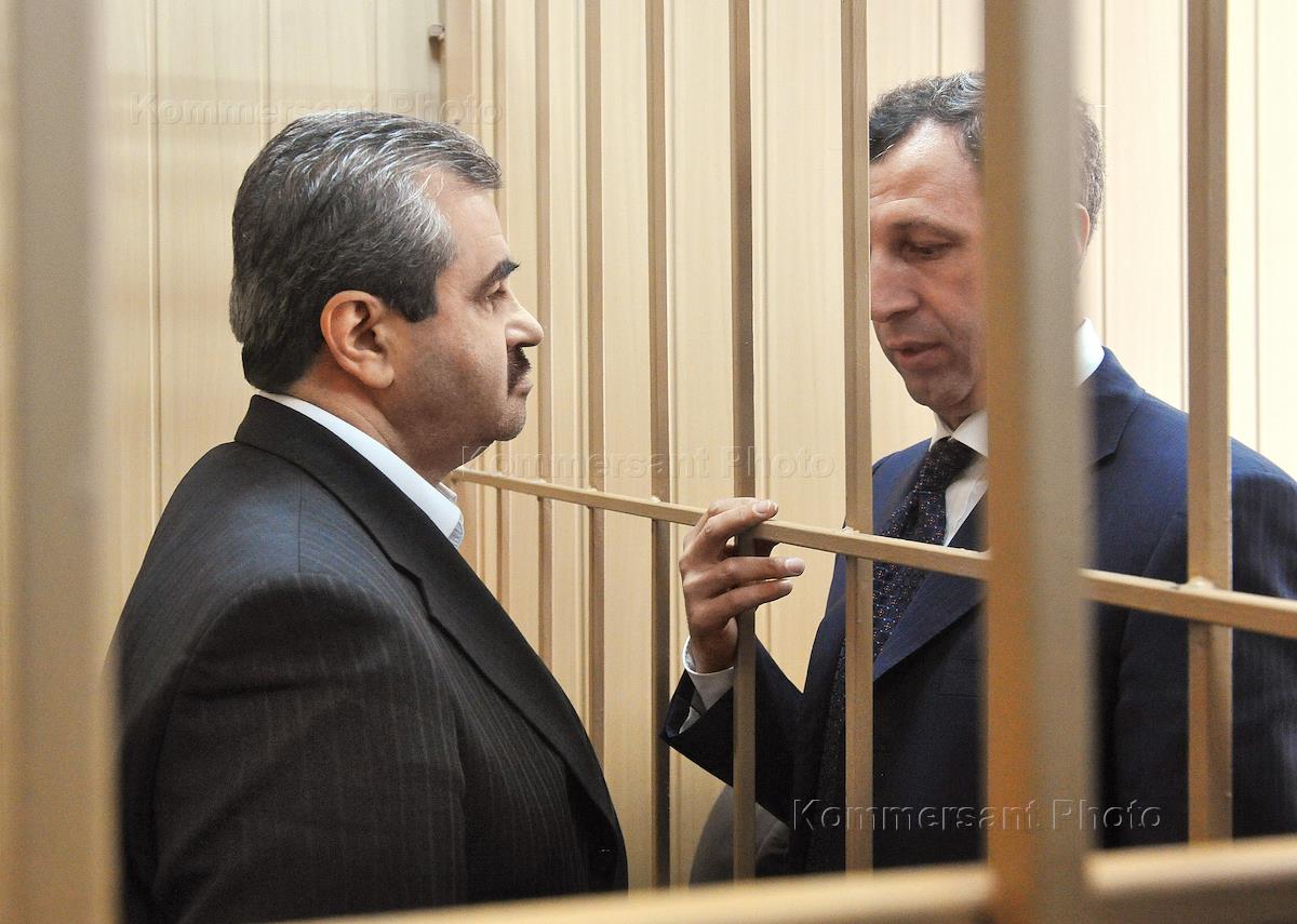 Head of administration of the President of Kabardino-Balkaria Vladimir Zhamborov (left), suspected of fraud, before the start of the hearing on the election of measure his punishment.