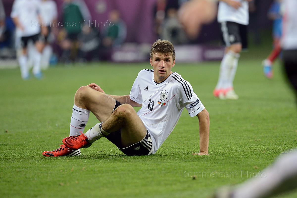 UEFA European Championship Cup "EURO 2012". Germany's Thomas Muller during the match between the national teams of Germany and Portugal. The match was held at the stadium "Arena Lions."