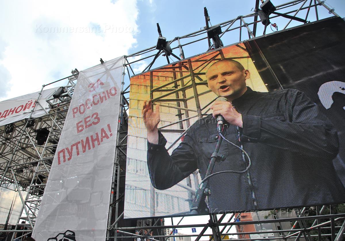 Opposition rally "March of millions". leader of the Left Front, Sergey Udaltsov during a meeting on Sakharov prospect.