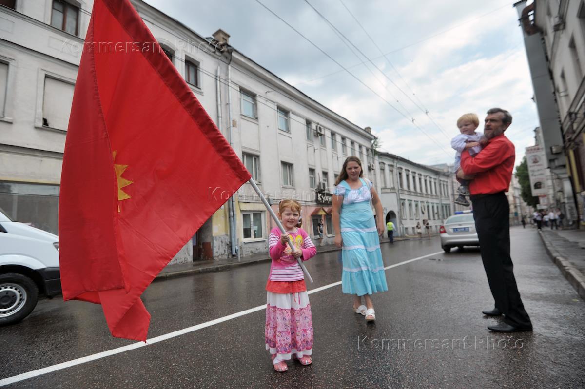 Leader of the Left Front, Sergey Udaltsov (center) in Moscow's Metro.