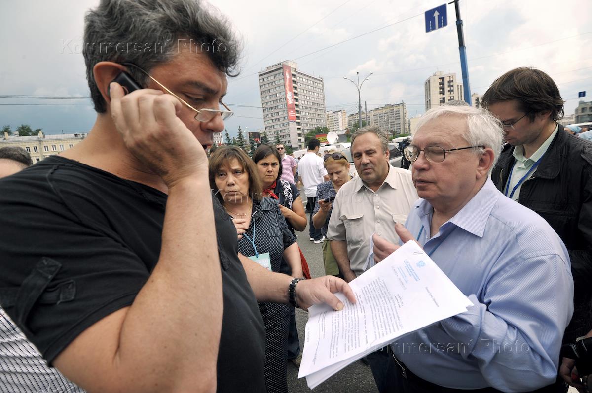 Opposition rally "March of millions". Co-Chair of the opposition People's Freedom Party, Boris Nemtsov (left) and Commissioner for Human Rights in Russia, President of the Russian Paralympic Committee, Vladimir Lukin (right) during the rally. Participants of the procession marched from Pushkin Square to Prospect Sakharov.
