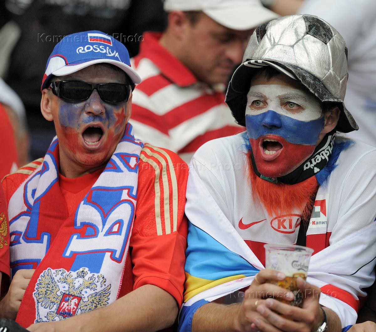 UEFA European Championship Cup "EURO 2012". Fans of Russian national football team during a match between the teams of Russia and Poland at the National Stadium.