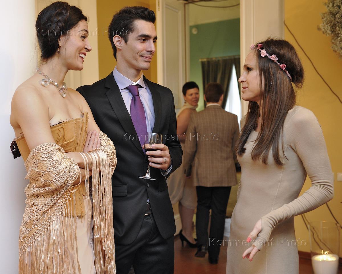 Исполнительный директор Московского музея современного искусства (ММСИ) Василий Церетели (слева) с супругой модельером (в центре) Кирой Сакарелло на Коктейле по случаю выхода нового аромата Loewe, в резиденции посла Испании в России.