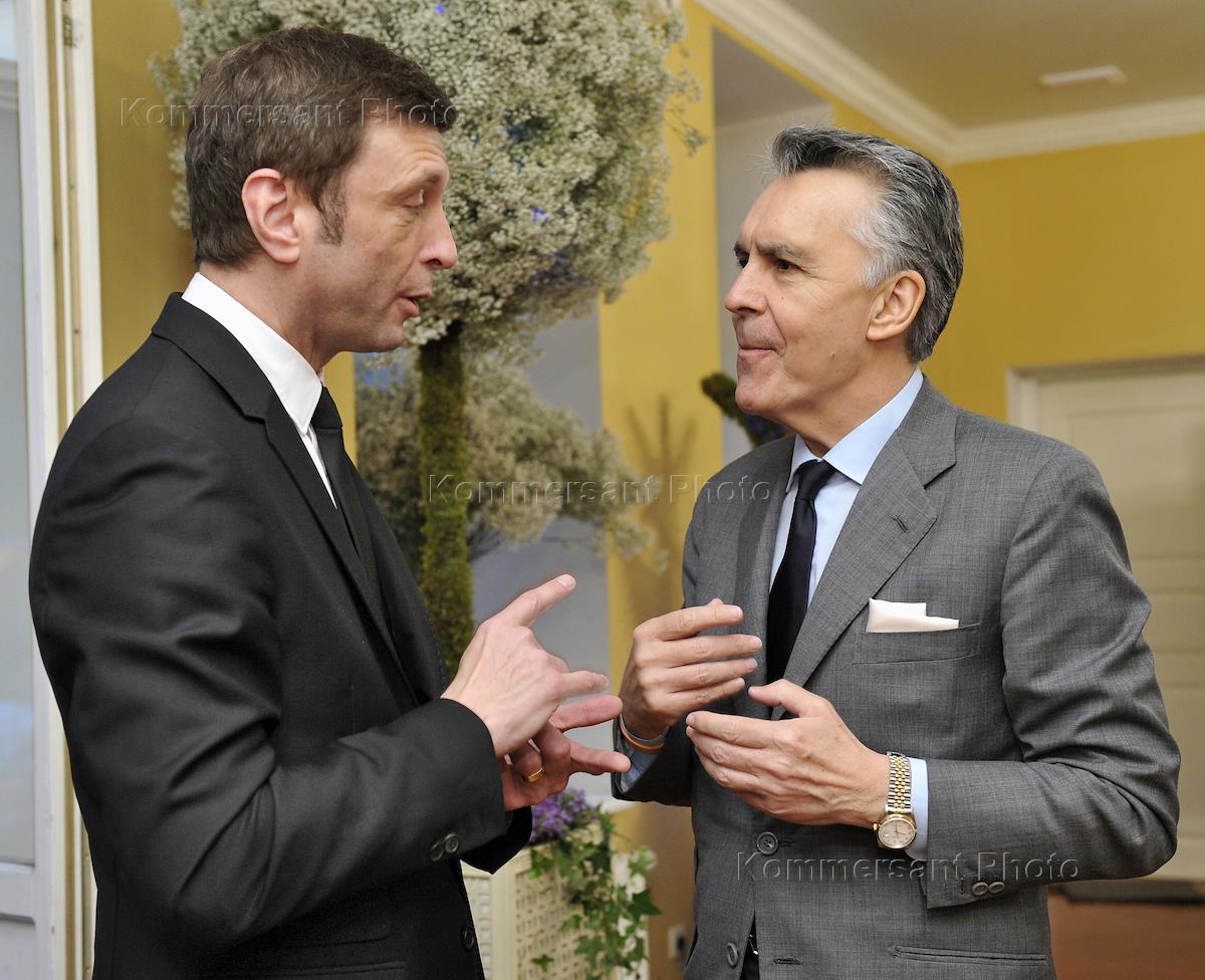 Исполнительный директор Московского музея современного искусства (ММСИ) Василий Церетели (слева) во время Коктейля по случаю выхода нового аромата Loewe, в резиденции посла Испании в России.