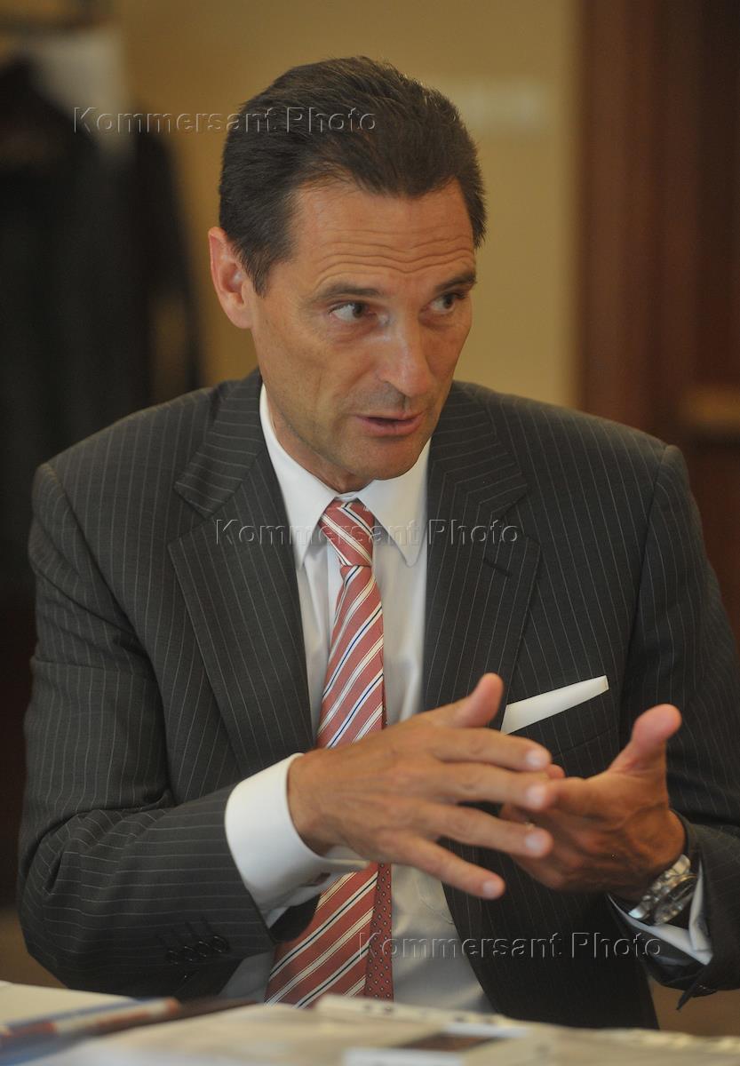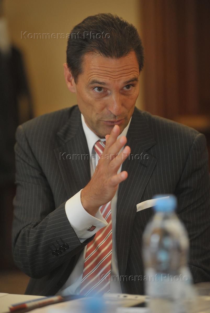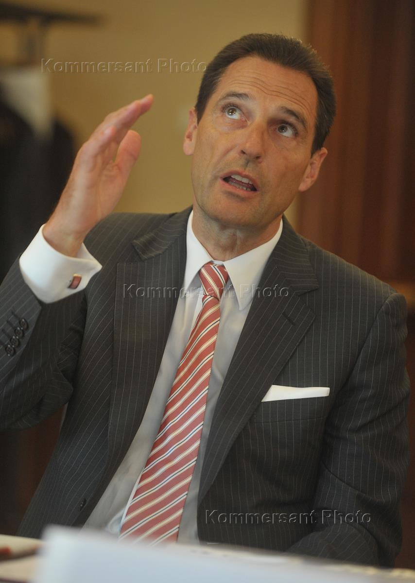 Генеральный директор группы Thomas Cook Питер Фанкхаузер во время пресс-конференции, посвященной годовщине создания совместного предприятия Intourist – Thomas Cook. Пресс-конференция прошла в отеле "Марриотт Роял Аврора".