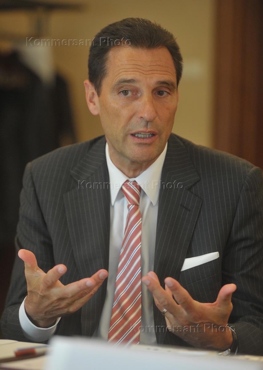 CEO of Thomas Cook, Peter Fankhauser, at a news conference on the anniversary of the establishment of the Intourist - Thomas Cook joint venture. The press conference was held in the Marriott Royal Aurora hotel.
