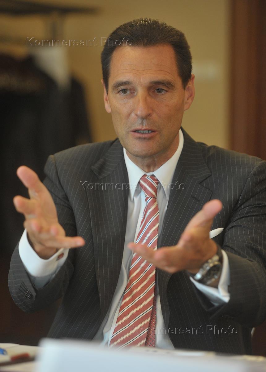 CEO of Thomas Cook, Peter Fankhauser, at a news conference on the anniversary of the establishment of the Intourist - Thomas Cook joint venture. The press conference was held in the Marriott Royal Aurora hotel.