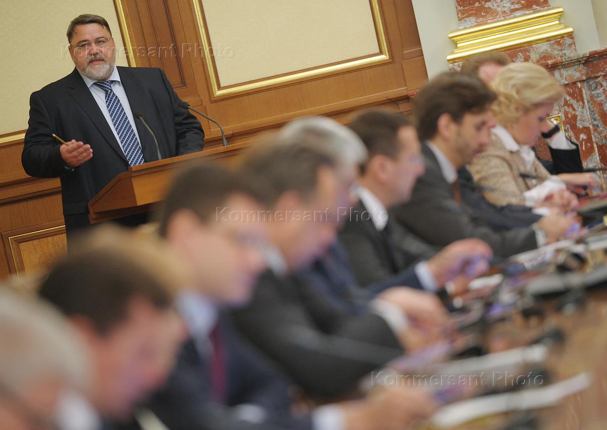 Minister for Liason with the Open Government Mikhail Abyzov during a meeting of the Government of Russia in the House of Government.