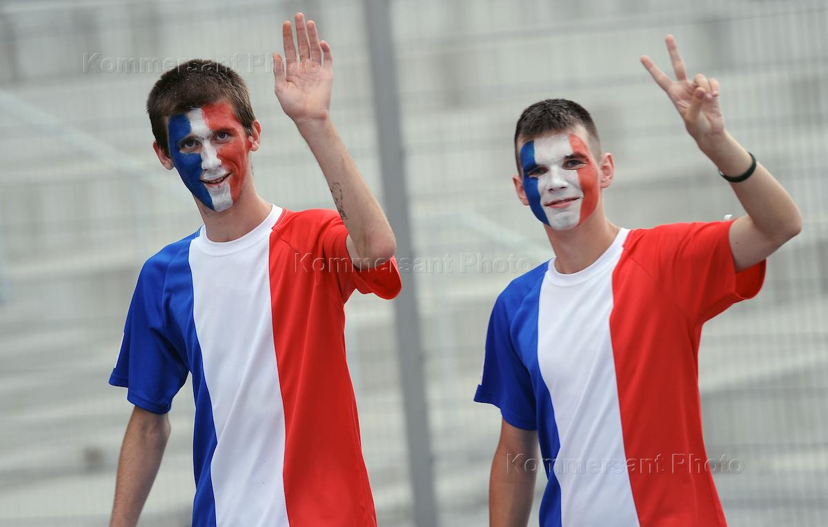 UEFA European Championship Cup EURO 2012. Fans before the match between the teams of Ukraine and France. The match was held at the Donbass Arena stadium.