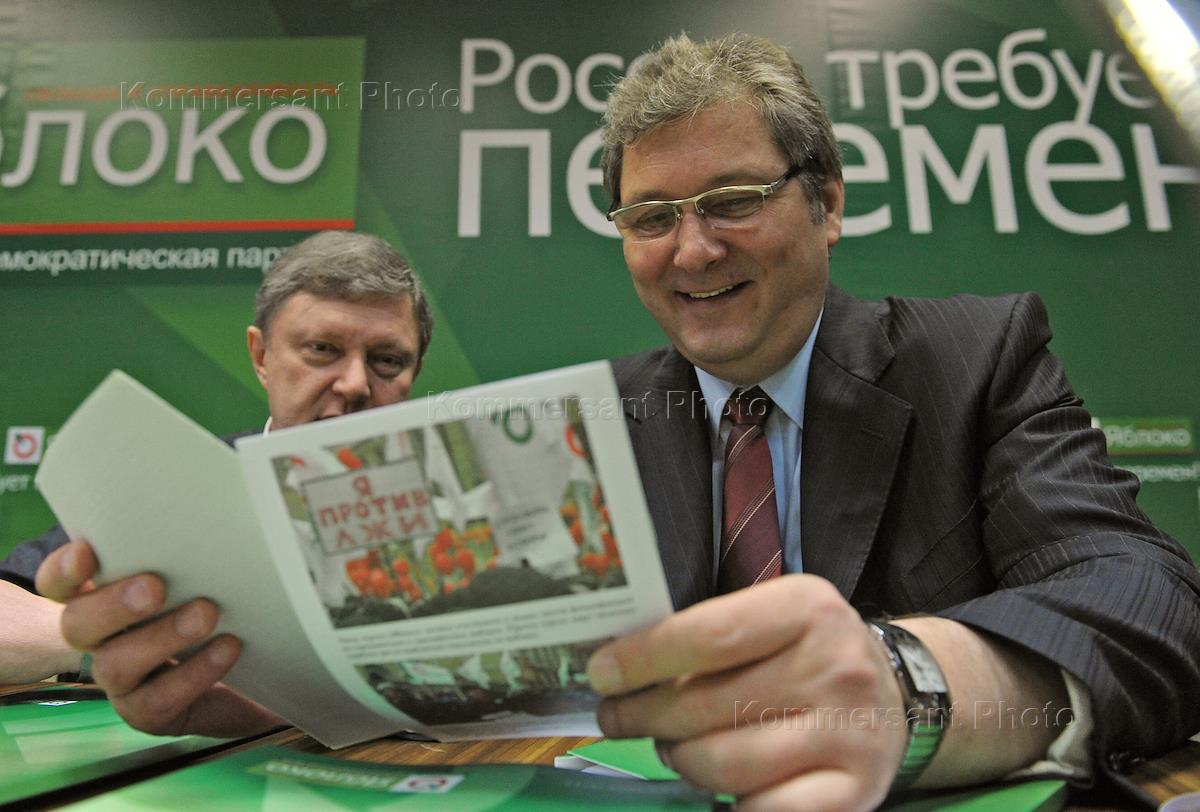 Chairman of the Russian United Democratic Party "Yabloko" Sergei Mitrokhin ( left), member of the political committee of the party "Yabloko" Grigory Yavlinsky at the XVII Congress of the Party "Yabloko".
