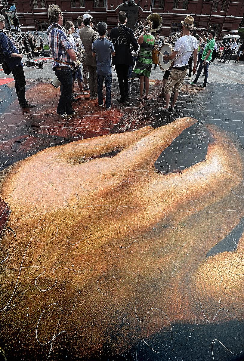Год Германии в России. Сборка пазла "Автопортрет" Альбрехта Дюрера на Манежной площади.