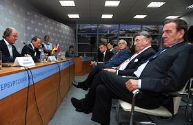 XVI Петербургский Международный экономический форум. Председатель совета директоров компании Linde AG Вольфганг Райтцле (слева) и председатель комитета акционеров компании "Северный Поток" (Nord Stream) Герхард Шредер (справа) на церемонии подписания соглашения между компанией "Сибур" и Linde AG.