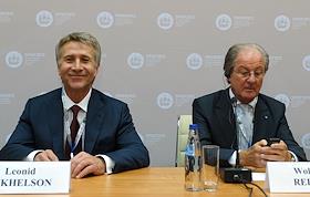 XVI Петербургский Международный экономический форум. Председатель совета директоров ОАО "СИБУР Холдинг" Леонид Михельсон (слева) и председатель совета директоров компании Linde AG Вольфганг Райтцле (справа) на церемонии подписания соглашения между компанией "Сибур" и Linde AG.