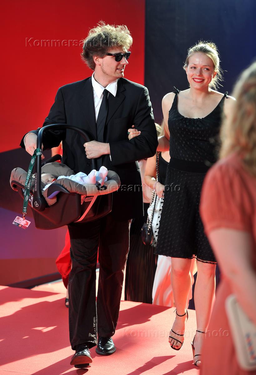 XXXIV Московский международный кинофестиваль (ММКФ). Кинорежиссер Владимир Хотиненко (справа) с супругой Татьяной (слева) на церемонии открытия в кинотеатре "Октябрь".