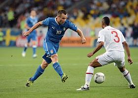 Чемпионат Европы UEFA по футболу "EURO 2012". 1/4 финала. Игрок сборной команды Италии Федерико Бальцаретти во время матча между сборными командами Англии и Италии. Матч прошел на стадионе "Олимпийский".