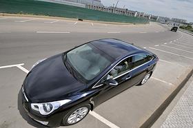 Тест-драйв автомобиля Hyundai ("Хундай") i40 на территории "Крокус Сити Молл".