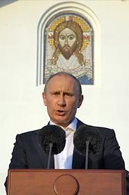 Президент России Владимир Путин на церемонии открытия в городе Нетания мемориала Победы Красной армии над фашистской Германией.