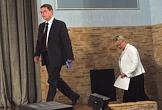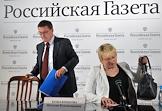 Руководитель Управления Росреестра по г. Москве Сергей Денисенко (слева) и исполняющая обязанности руководителя Управления Росреестра по Московской области Наталья Кожевникова (справа) во время пресс-конференции на тему "Большая Москва: присоединение новых территорий" в пресс-центре "Российской газеты".