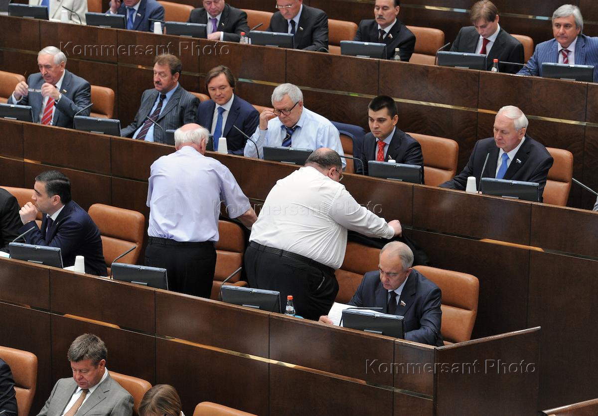 Представитель в Совете Федерации (СФ) России от Пензенской области Борис Шпигель (слева) на заседании СФ России.