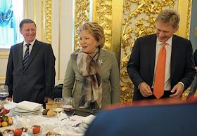 Руководитель администрации президента России Сергей Иванов (слева) и председатель Совета Федерации России Валентина Матвиенко (справа) на приеме в честь выпускников военных академий и университетов. Прием прошел в Кремле.
