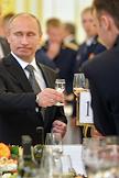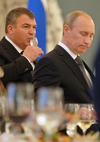 Министр обороны России Анатолий Сердюков (слева) и президент России Владимир Путин (справа) на приеме в честь выпускников военных академий и университетов. Прием прошел в Кремле.