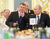 Министр обороны России Анатолий Сердюков (в центре) и президент России Владимир Путин (справа) на приеме в честь выпускников военных академий и университетов. Прием прошел в Кремле.
