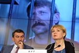 Адвокат Виктор Буробин (слева) и супруга Виктора Бута Алла Бут (справа) во время пресс-конференции, посвященной возвращению в Россию бизнесмена Виктора Бута. Пресс-конференция прошла в РИА "Новости".