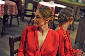 Актриса Оксана Фандера на вечеринке посвященной премьере фильма Резо Гигинеишвили "Любовь с акцентом" в кинотеатре "Октябрь".