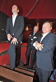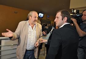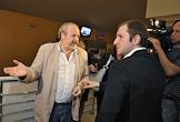 Режиссер Владимир Хотиненко (слева) на премьере фильма Резо Гигинеишвили (справа) "Любовь с акцентом".