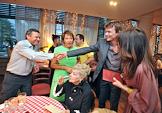 Премьера фильма Резо Гигинеишвили "Любовь с акцентом". Главный редактор журнала "Hello!" Светлана Бондарчук (справа вторая) и председатель союза кинематографистов России, кинорежиссер Никита Михалков (справа) на вечеринке в кинотеатре "Октябрь".