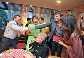 Режиссер Резо Гигинеишвили (слева), продюсеры Арчил Геловани (в центре) и Игорь Мишин (справа) премьере фильма "Любовь с акцентом" в кинотеатре "Октябрь".