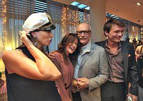 Премьера фильма Резо Гигинеишвили "Любовь с акцентом". Слева направо: главный редактор журнала "Hello!" Светлана Бондарчук, председатель союза кинематографистов России, кинорежиссер Никита Михалков, супруги актриса Оксана Фандера и режиссер Филипп Янковский на вечеринке в кинотеатре "Октябрь".