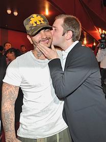 Певец Тимати (слева) на премьере фильма режиссера Резо Гигинеишвили (справа) "Любовь с акцентом". Премьера состоялась в кинотеатре "Октябрь".