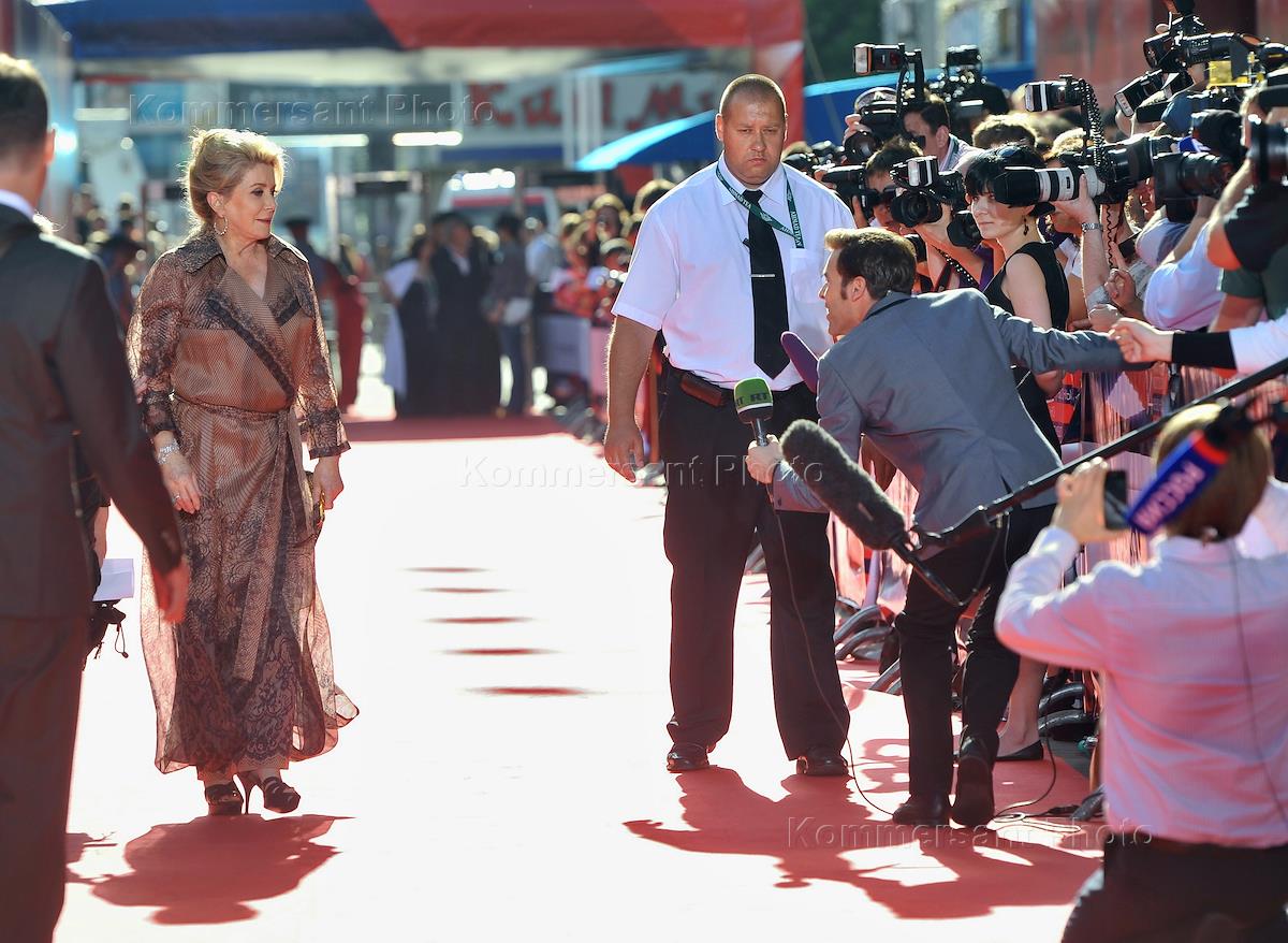 Французская актриса Катрин Денев (слева) на церемонии закрытия 34-го Московского Международного кинофестиваля (ММКФ). Церемония прошла в кинотеатре "Октябрь".