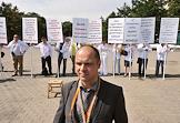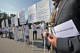 Митинг московских операторов наружной рекламы прошел в Новопушкинском сквере. Надпись на плакате "Долой дискриминацию по роду занятий! На нефтянные вышки конкурс 1 раз и навсегда, почему на наружную рекламу каждые 5 лет?".
