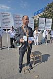 Митинг московских операторов наружной рекламы прошел в Новопушкинском сквере. Участник митинга "с петлей Черникова".