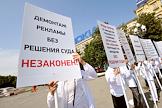 Митинг московских операторов наружной рекламы прошел в Новопушкинском сквере. Надпись на плакате "Демонтаж рекламы без решения суда незаконен!".