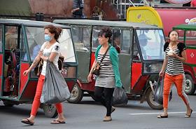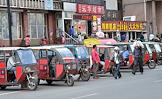 Виды Китая. Велорикши у железнодорожного вокзала в городе Харбин.