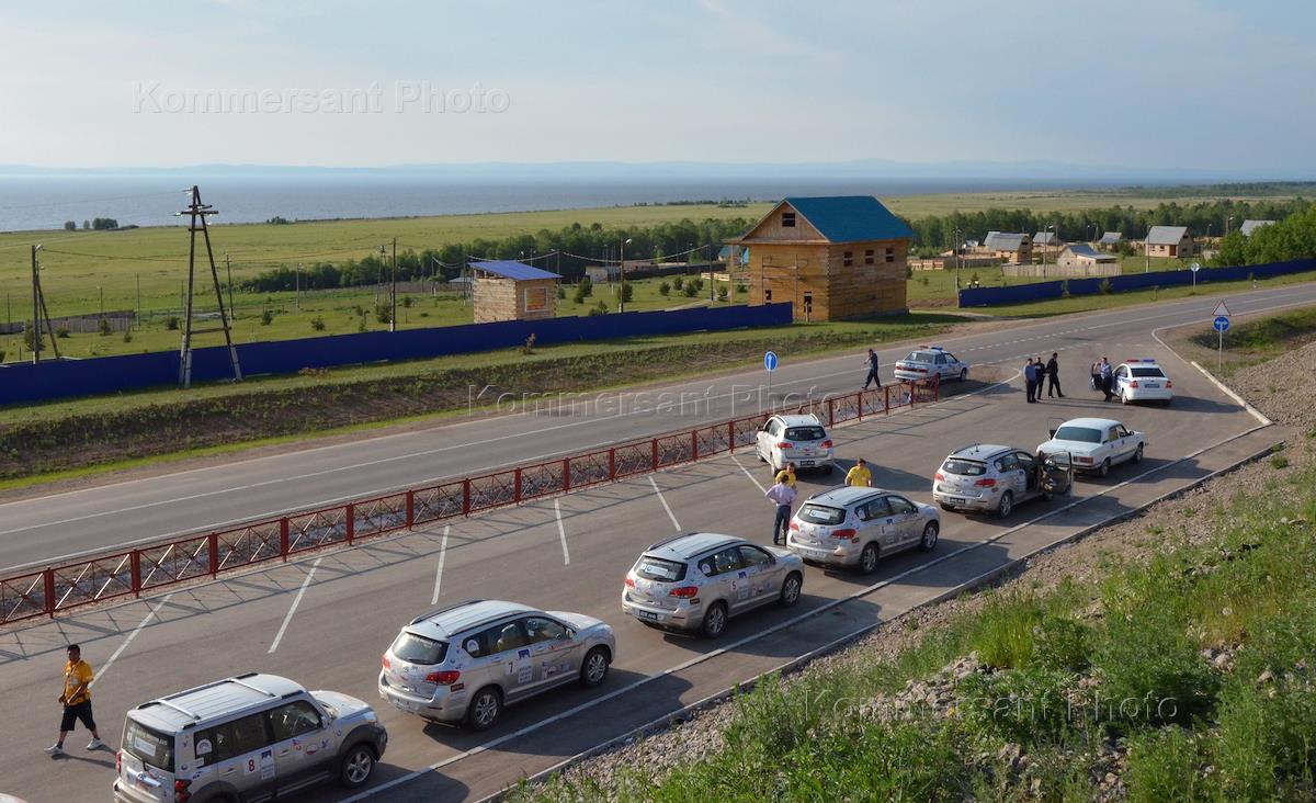 Автопробег "Пекин - Москва 2012". Этап I. Участники автопробега в селе Гремячинское на берегу озера Байкал.