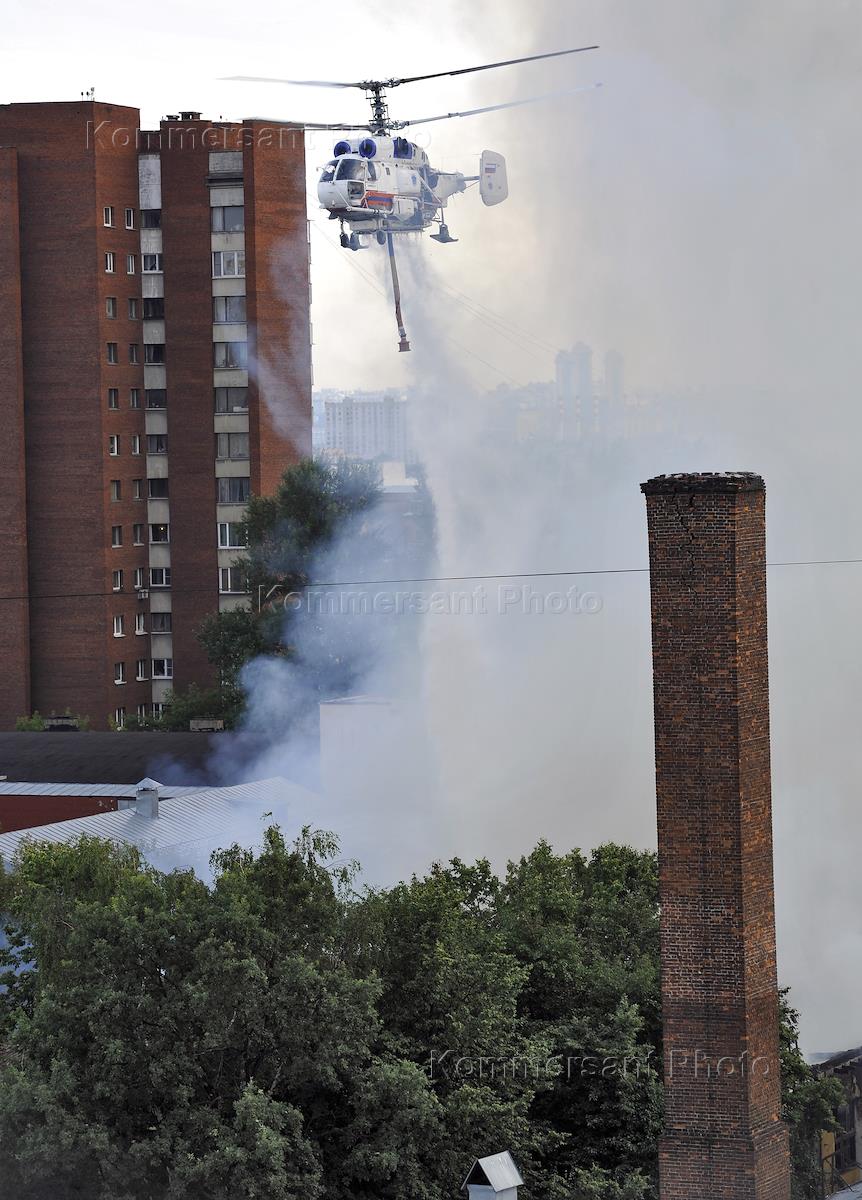 Тушение пожара в ангаре по адресу улица Серегина рядом с которым расположены здания Военно-воздушной инженерной академии имени Н. Е. Жуковского.