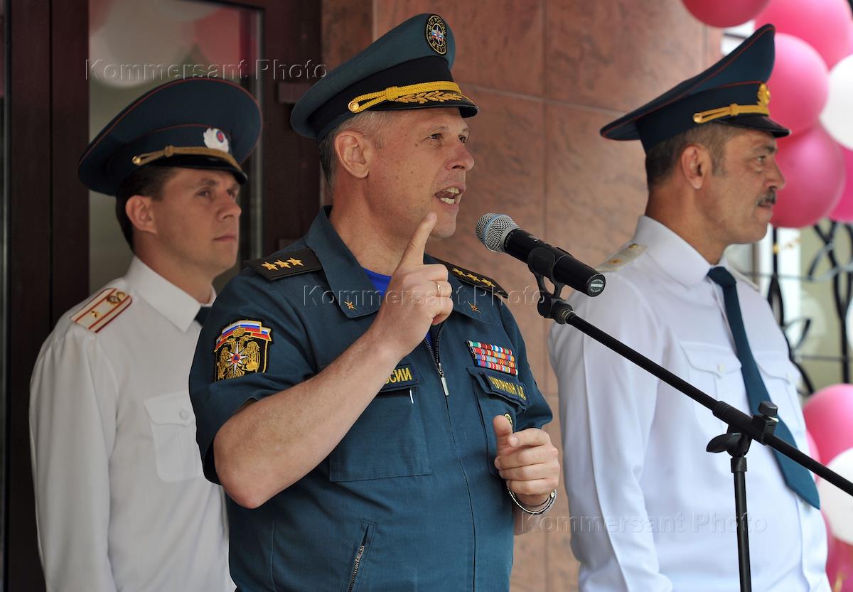 Заместитель министра МЧС России Александр Чуприян на праздновании 75-летия Всероссийского научно-исследовательского института противопожарной обороны МЧС России.