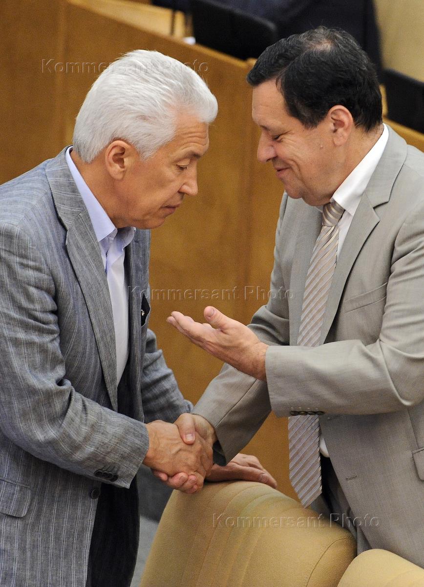 Первый заместитель председателя комитета Государственной думы (ГД) России по охране здоровья Николай Герасименко (слева) и член комитета ГД России по безопасности и противодействию коррупции Борис Резник (справа) на пленарном заседании Госдумы России.