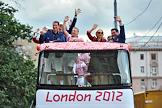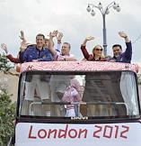 Презентация дизайна парадной и официальной спортивной формы, которая станет визитной карточкой российских Олимпийцев на Играх XXX Олимпиады 2012 года в Лондоне. Слева направо: первый заместитель председателя Государственной Думы России Александр Жуков, директор по развитию российского ритейлера Bosco di Ciliegi Константин Андрикопулус, артист эстрады Геннадий Хазанов, директор торгового департамента галереи магазинов "Боско ди Чильеджи" Екатерина Моисеева, председатель наблюдательного совета компании Bosco di Ciliegi Михаил Куснирович во время презентации.